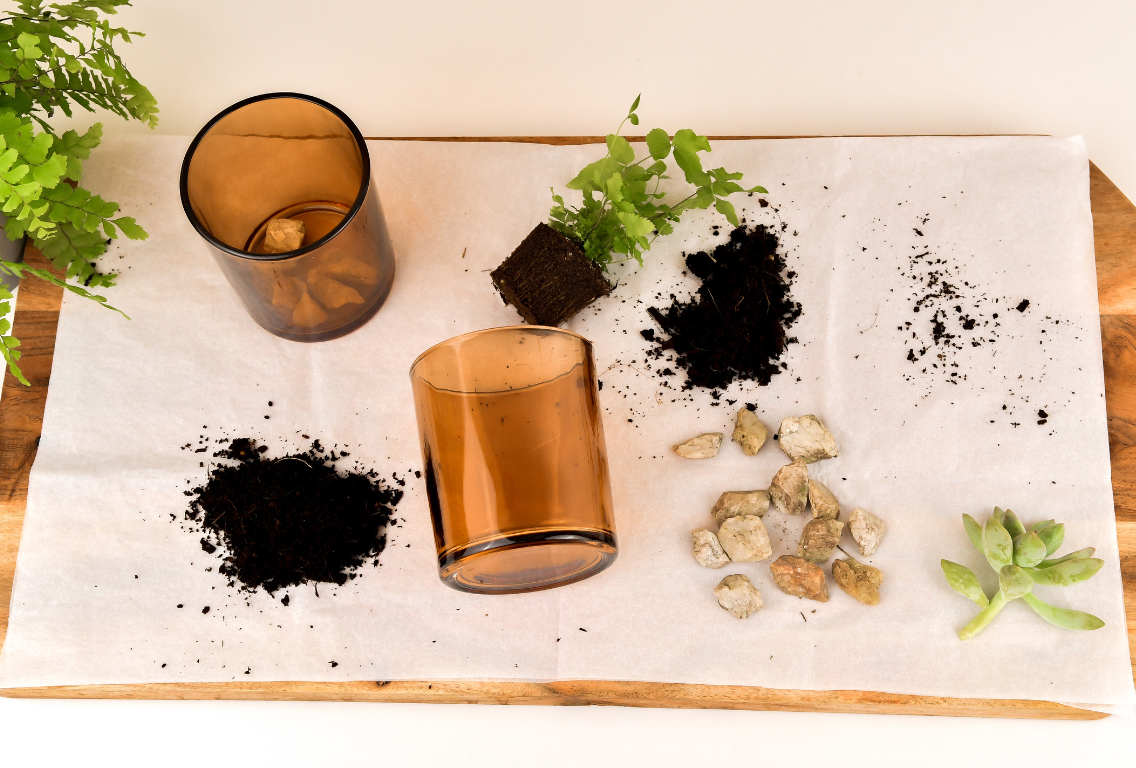 Fill the jar with a succulent-friendly potting mix, leaving some space at the top for your new green resident.