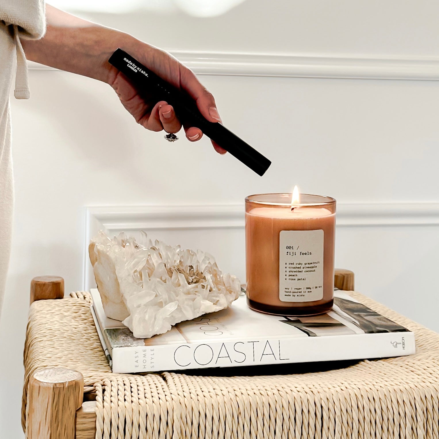 Ignite your madebymisha candles in a safe & luxe way with our stylish rechargeable flameless candle lighter.